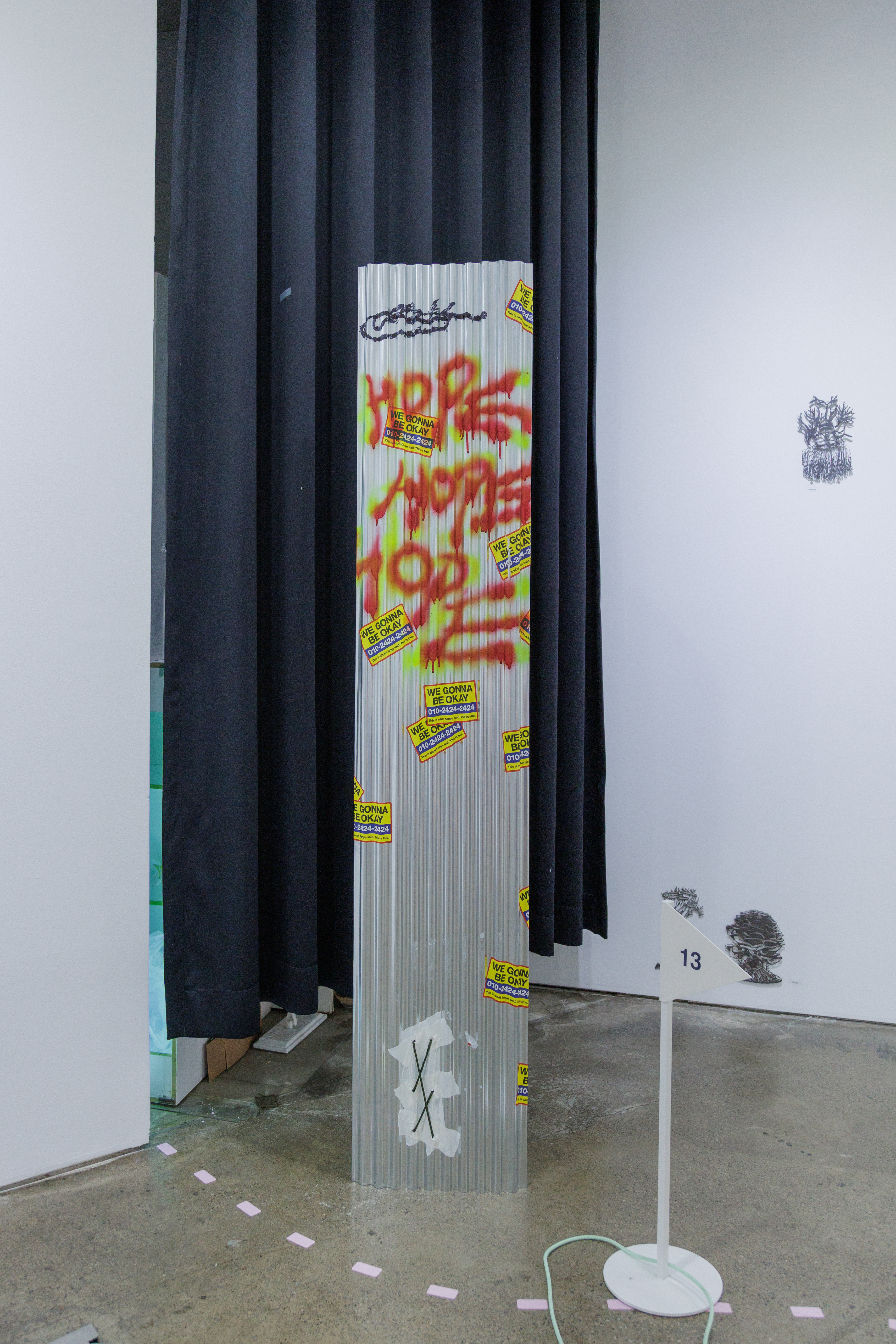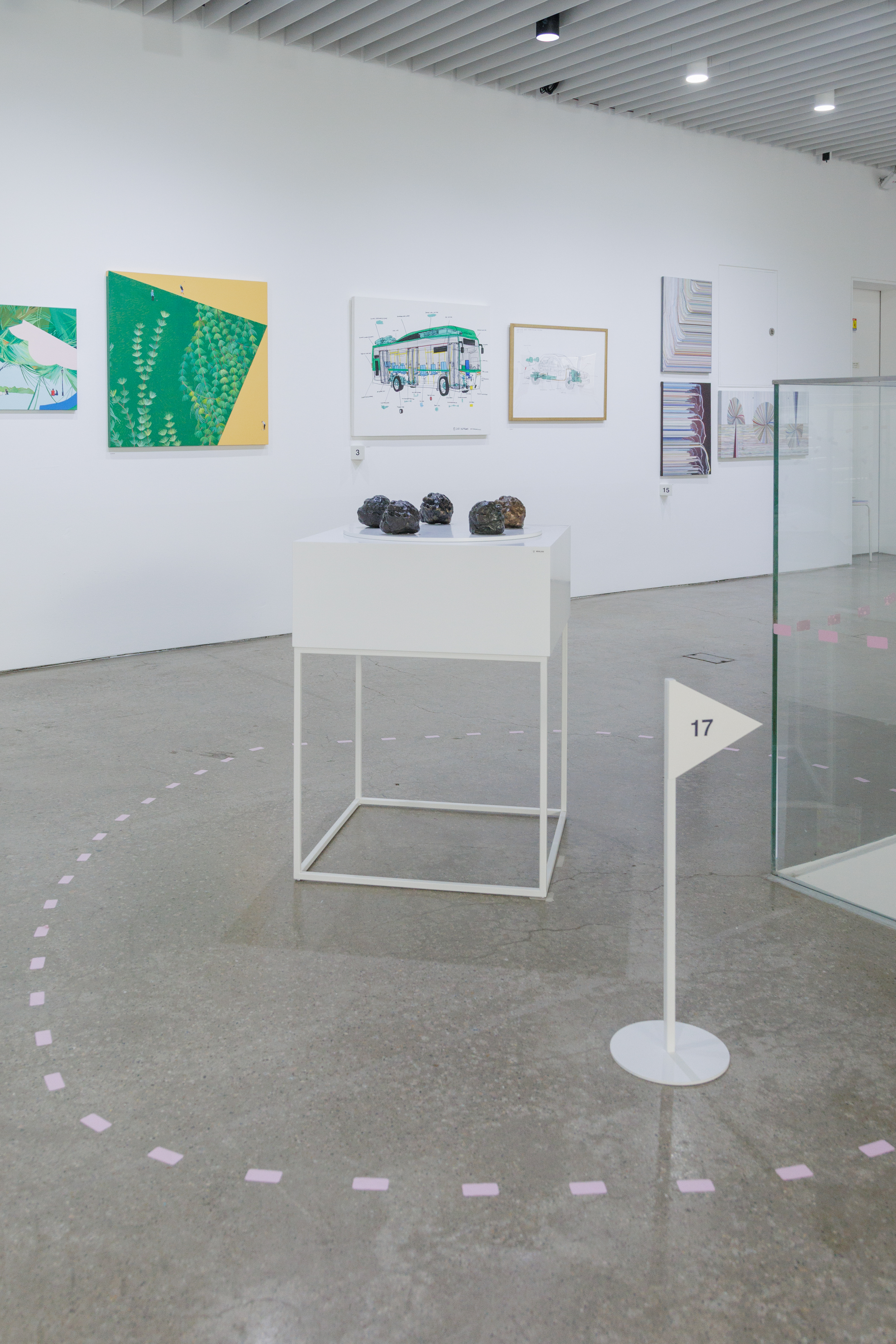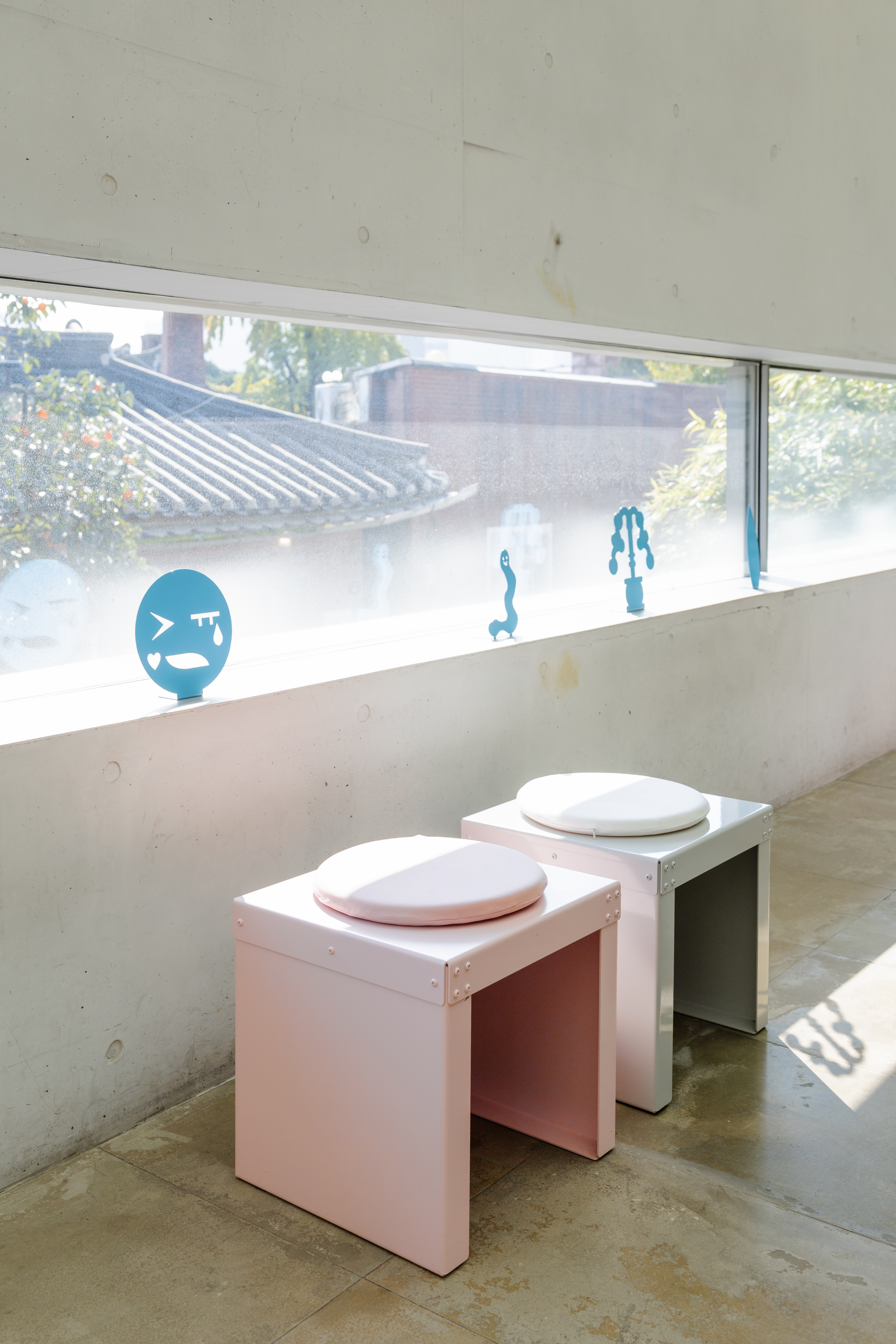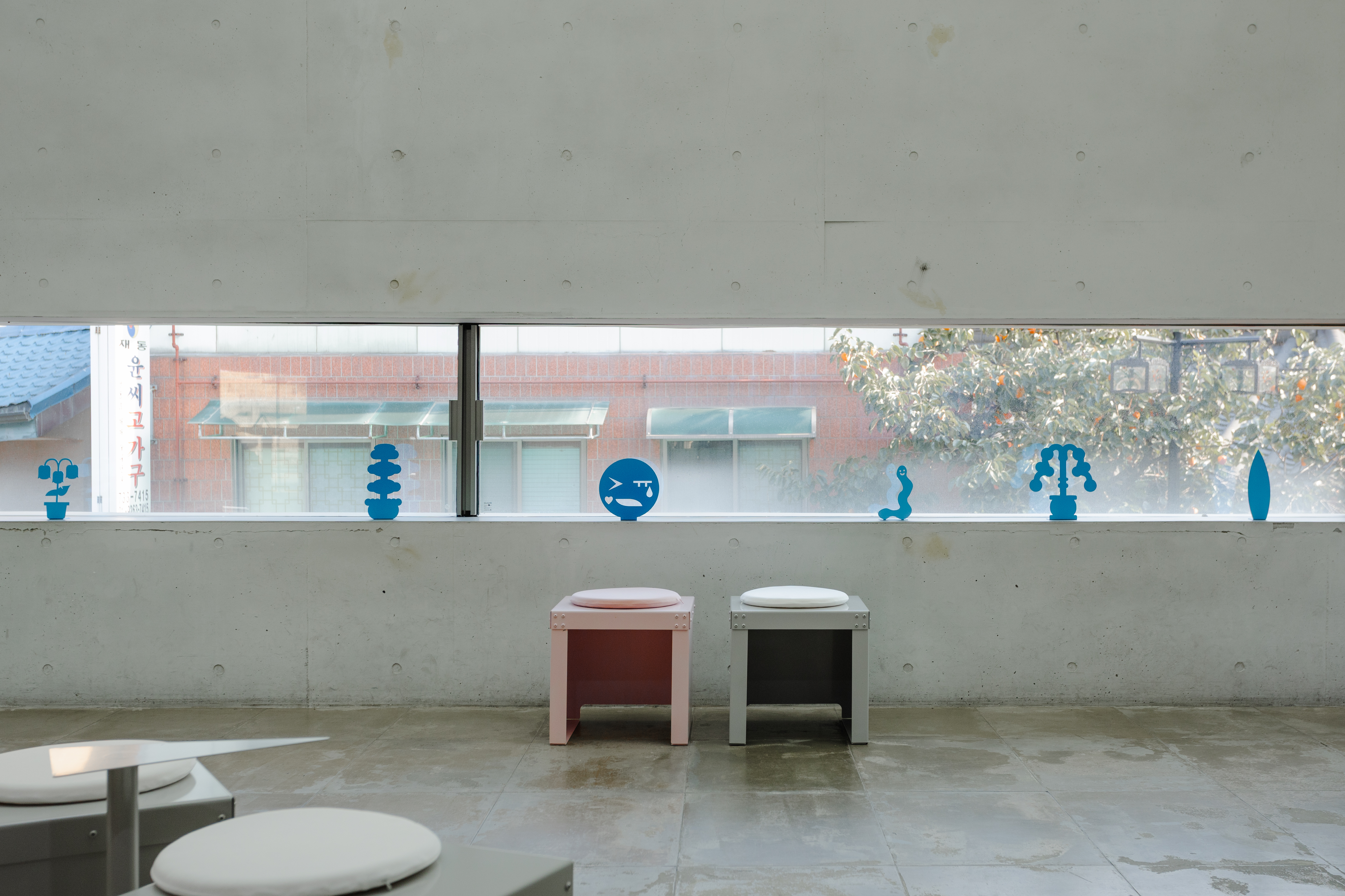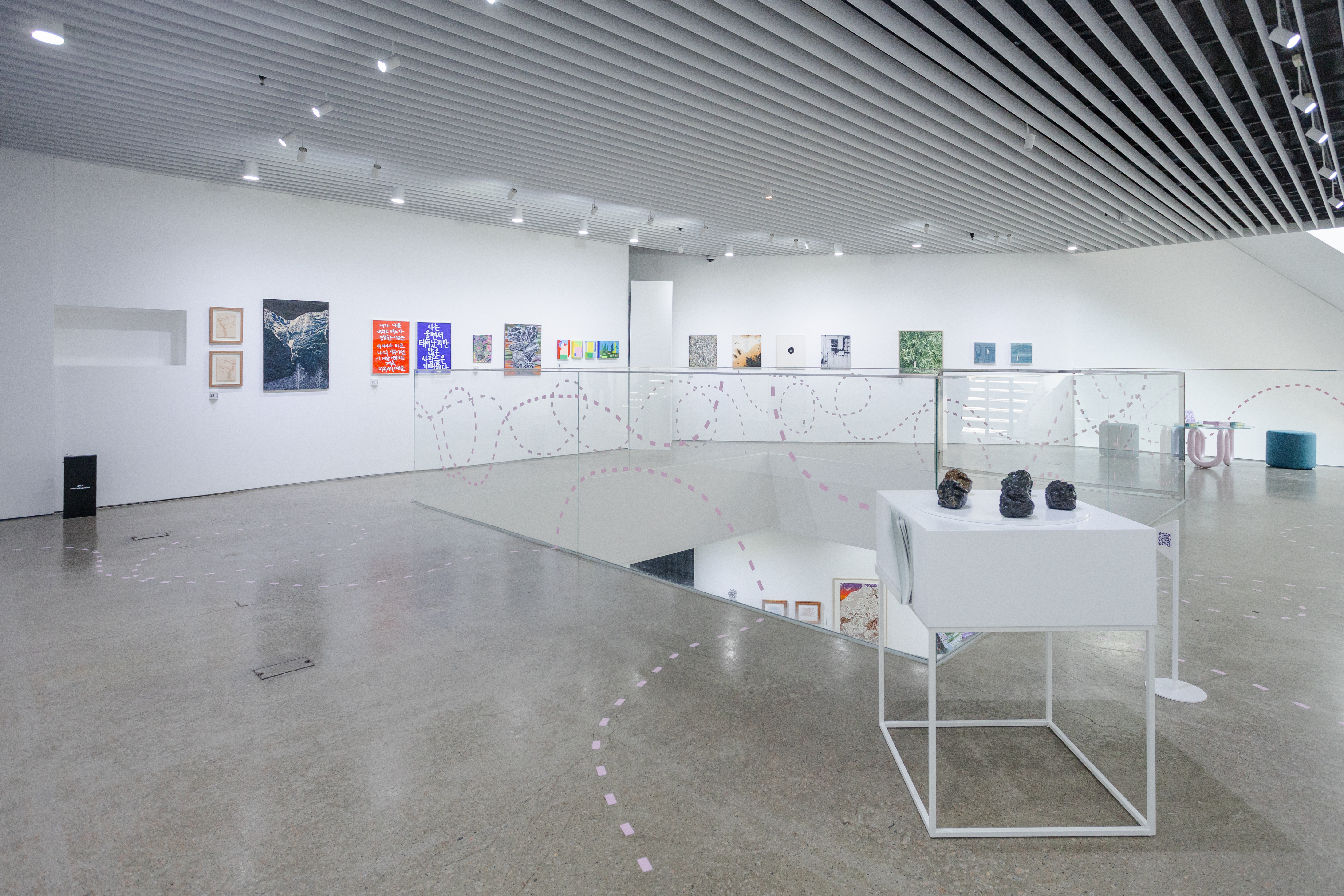 다양한 작가와 방문객이 언제든 찾아와 일상 속에서 문화예술을 향유할 수 있도록 기획된 전시라는 점에서, ‘섬’이라는 공간적 콘셉트를 설정했습니다. 이질적인 사물과 소재가 모인 환경 속에서 관람객이 작품 사이를 탐험하듯 이동하는 모습을 상상하며, 가구와 집기, 깃발과 부표를 연상시키는 사이니지, 자취를 따라가는 듯한 점선 형태의 공간 그래픽을 디자인했습니다.