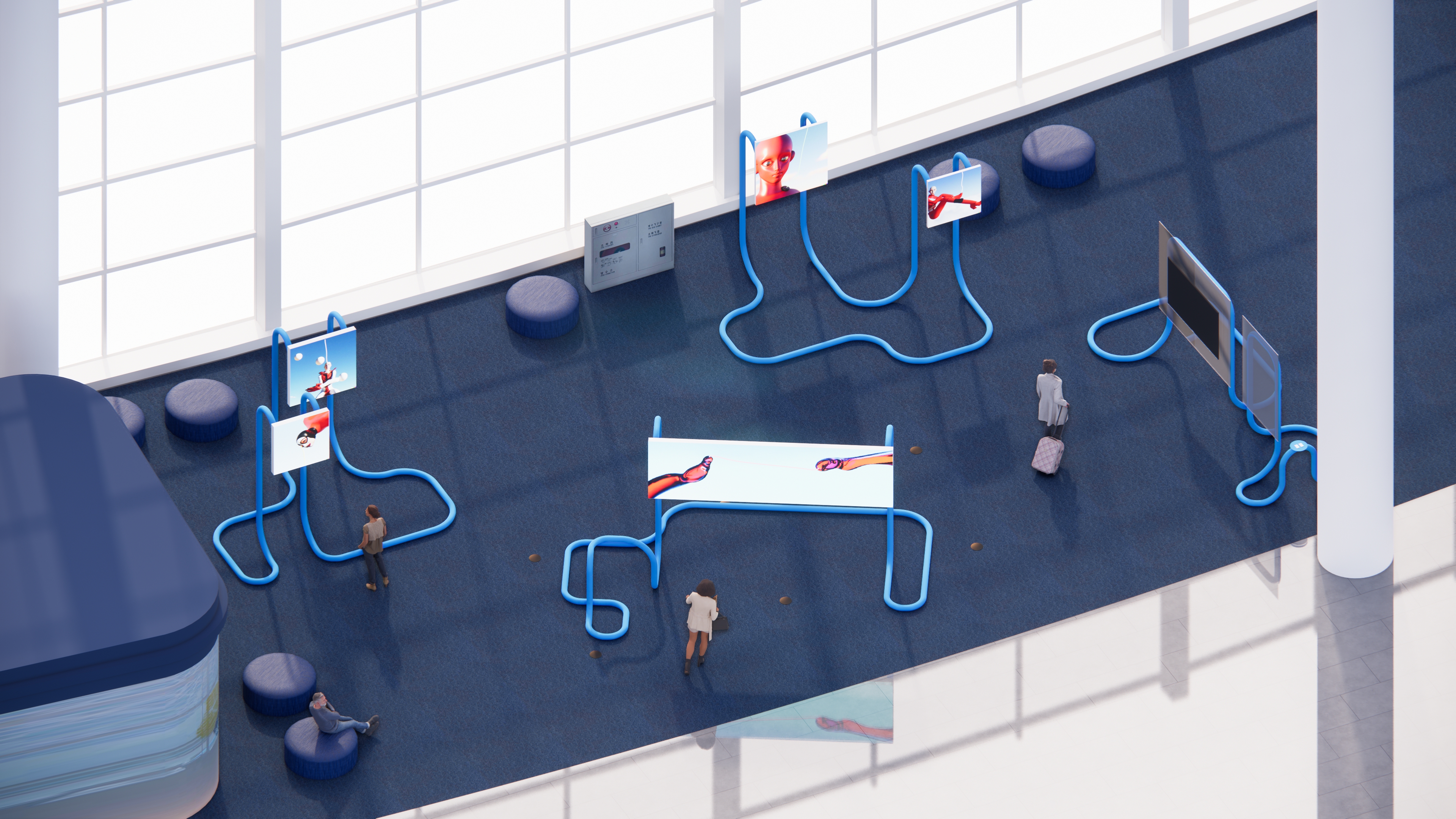 인천국제공항에서 열리는 ≪기기 밖의 유령(Ghost Out of the Machine)≫ 전시에 추수 작가와 협업한 초대형 설치작업 ‘달리의 에이미'를 선보였습니다. 아워레이보는 공간 안에서 존재감을 드러내는 거대한 곡선 금속 구조물과 발광하는 스크린을 통해, 어디론가 이동하기 위해 스쳐가는 공항이라는 장소적 특성과 작품속 에이미가 쏟아내는 ‘생성’의 광선이자 발광의 눈물이 담고 있는 해방과 상실의 의미를 연결했습니다.